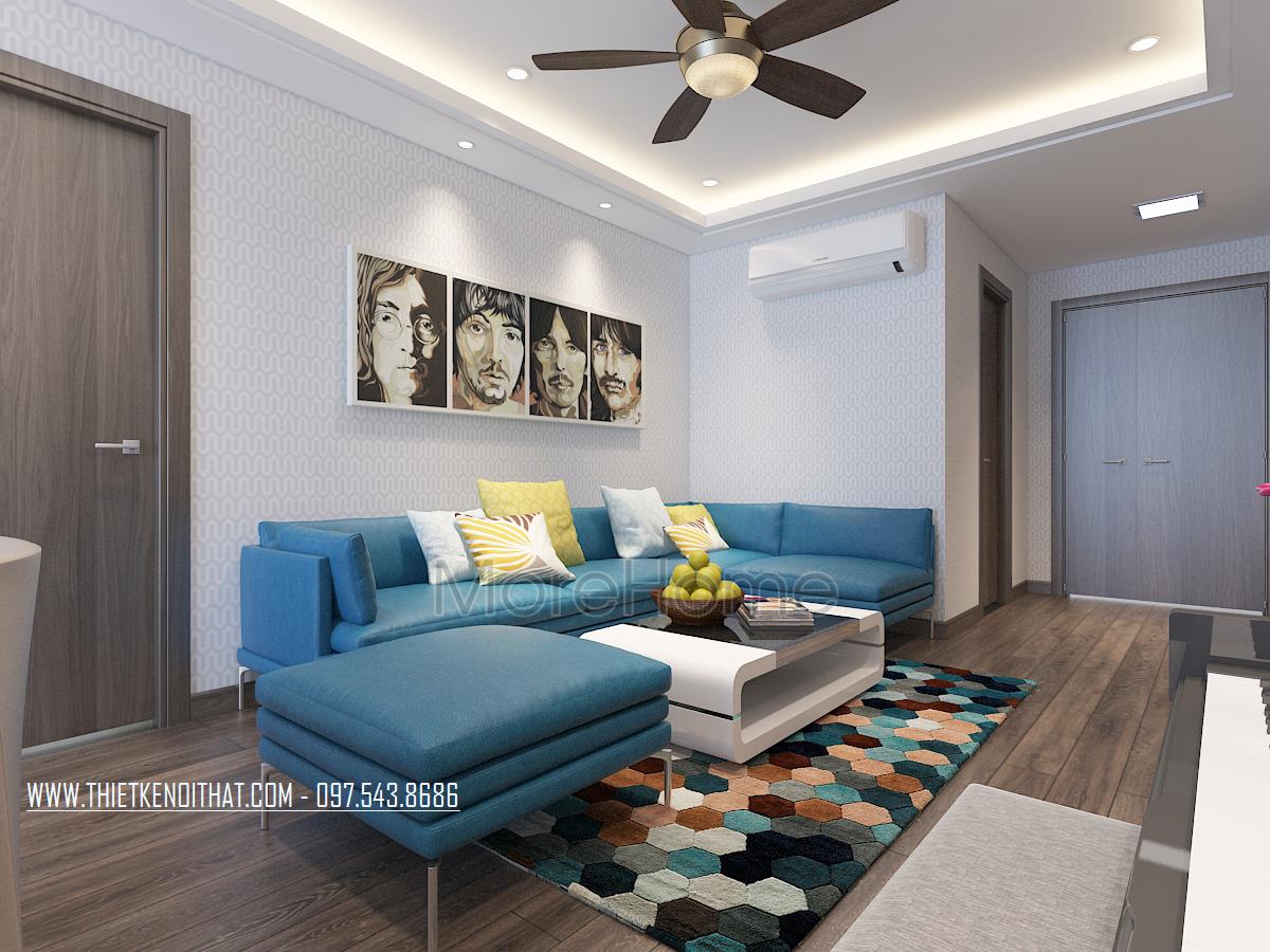 Thiết kế nội thất phòng khách sử dụng tone màu đơn giản, gam màu khá lạnh vì vậy mang lại cho không gian sinh hoạt chung một cảm giác sang trọng, sạch sẽ và vô cùng tinh tế. Gam màu lạnh cũng là một trong những yếu tố giúp không gian trở nên cơi nới và thoáng hơn rất nhiều. Thiết kế mảng tường sơn đơn sắc đơn điệu và nhàm chán được kiến trúc sư biến hóa thành mảng tường gỗ ấn tượng vừa đảm bảo sự mới lạ và ấn tượng cho không gian mà lại không làm ảnh hưởng đến diện tích sử dụng.