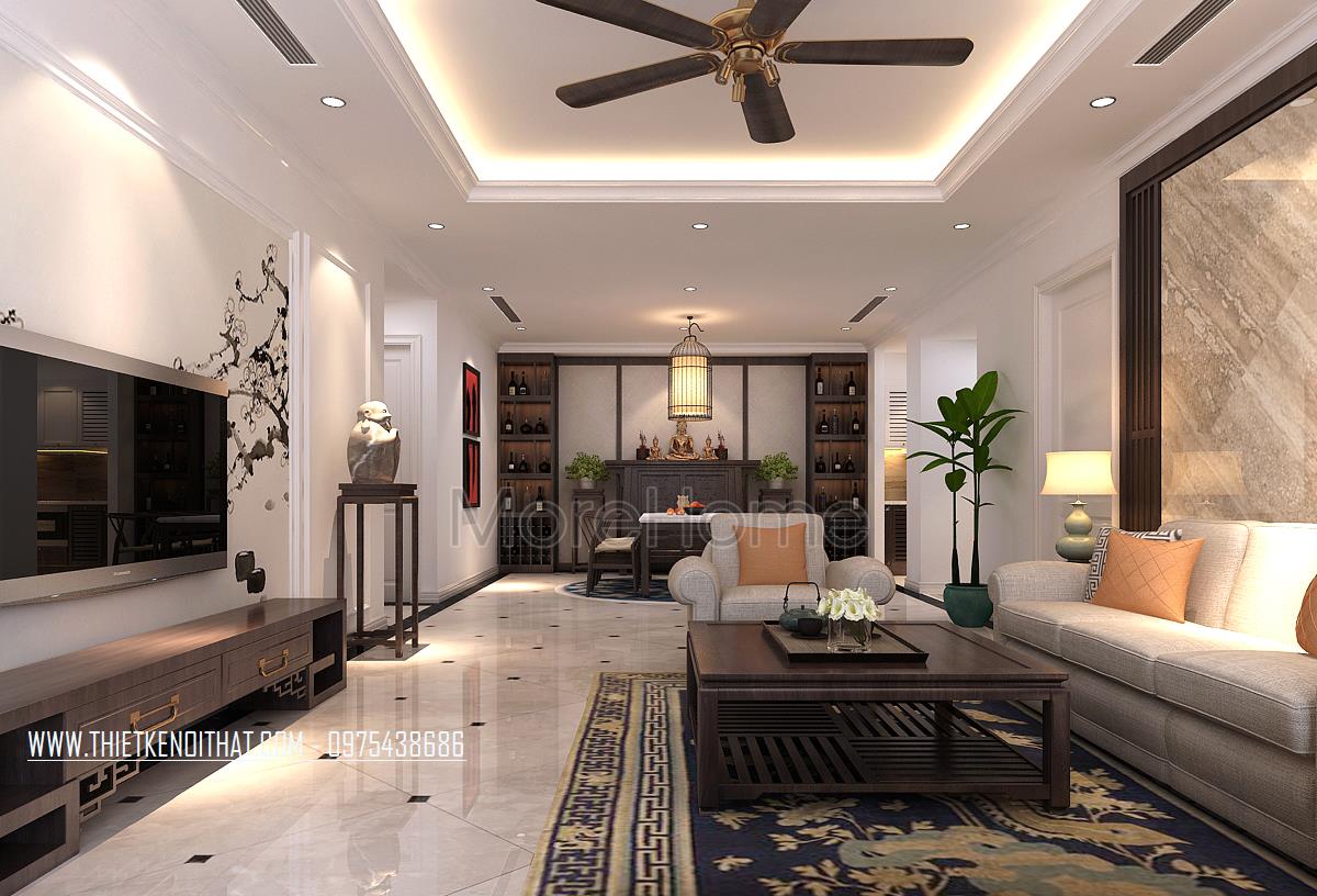Một trong những căn hộ hiếm hoi tại khu chung cư Thăng Long Number One lựa chọn cho mình phong cách thiết kế nội thất gỗ việt độc đáo. Mang nét truyền thống và trong cuộc sống hiện đại với những sản phẩm đồ gỗ nội thất tự nhiên cao cấp.