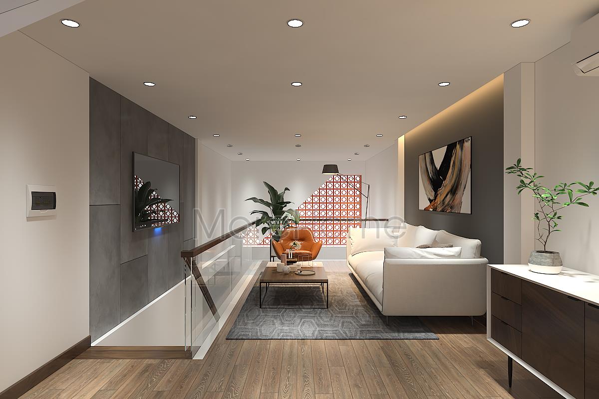 Thiết kế nội thất phòng khách hiện đại tại nhà ống mặt phố An Dương