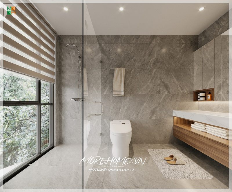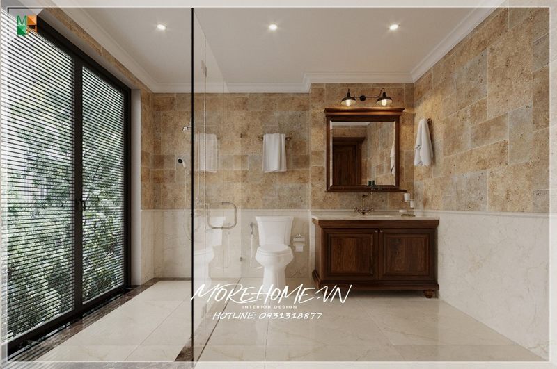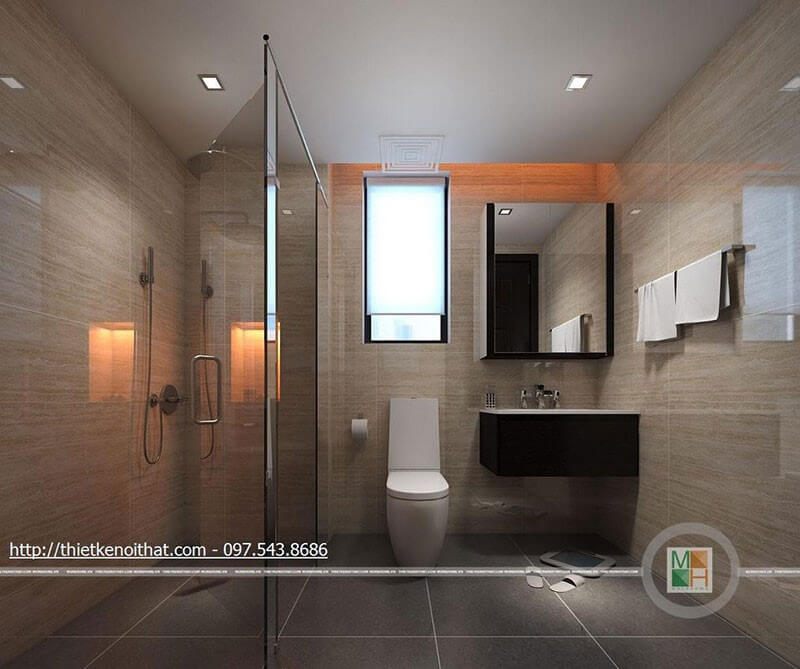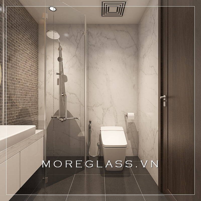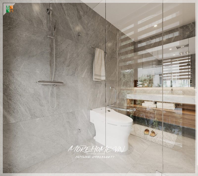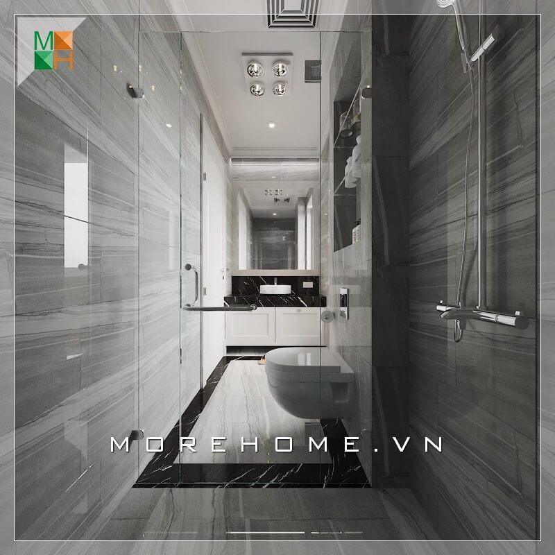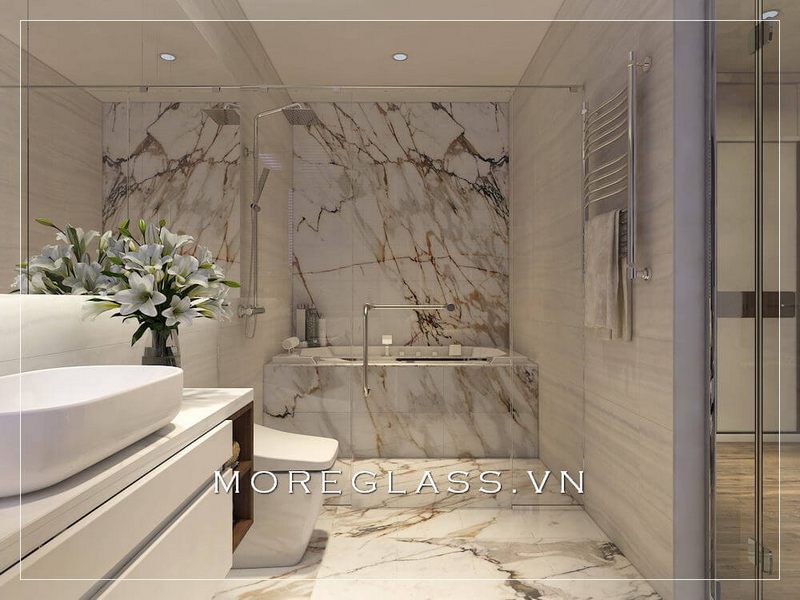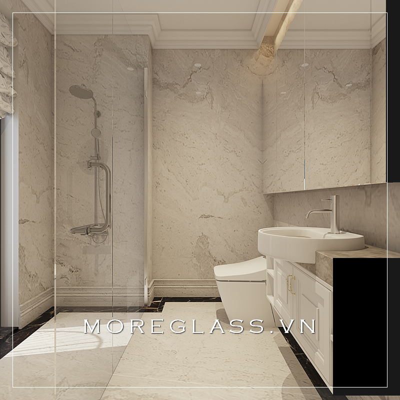 Sử dụng đá ốp lát phòng tắm và vách kính ngăn hiện đại cho phòng tắm của biệt thự, nhà phố thêm cao cấp sang trọng.
