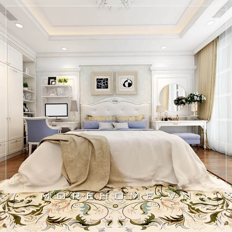 Trang trí nội thất phòng ngủ sang trọng, gam màu trắng chủ đạo tạo nên sự thanh lịch, thoải mái cho gia chủ