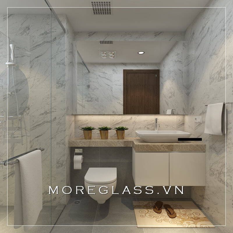 Mẫu thiết kế phòng tắm hiện đại sử dụng vách tắm