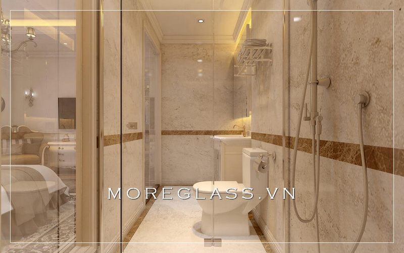 kính cường lực ngăn cách hai khu vệ sinh và tắm nhẹ nhàng mà tinh tế