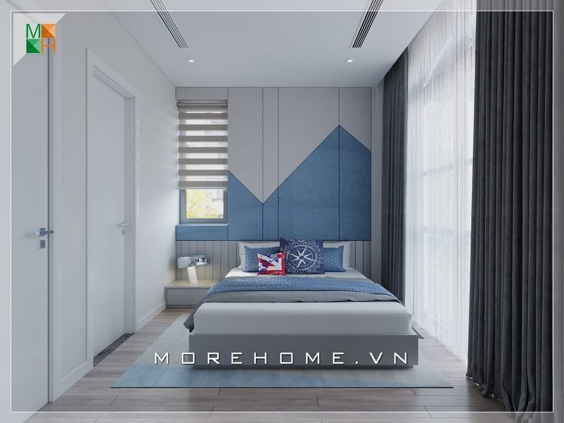 Phòng ngủ bé trai hiện đại, đơn giản, gỗ công nghiệp là chất liệu chủ đạo được gia chủ lựa chọn phù hợp với mức chi phí đầu tư của mình