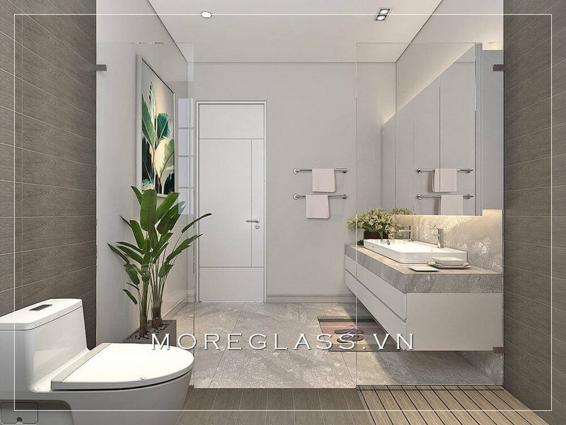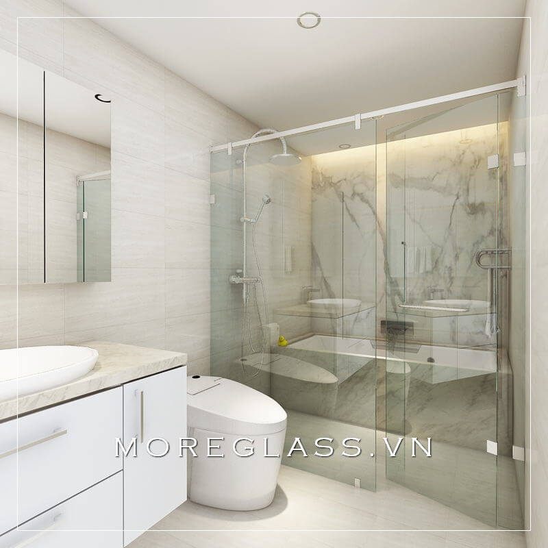 Mẫu phòng tắm được làm từ kính cường lực để phù hợp với căn hộ chung cư cao cấp.