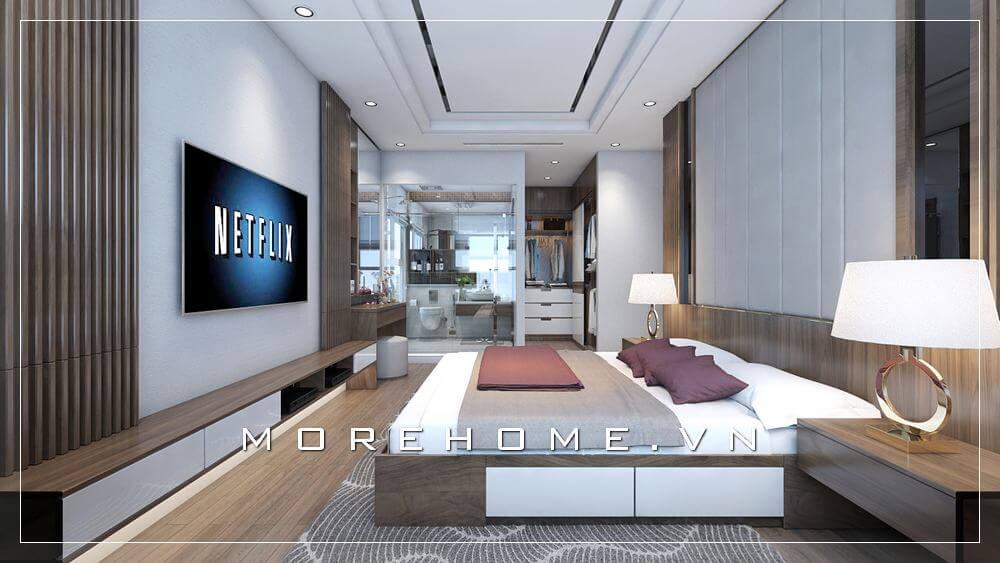 Thiết kế giường ngủ chung cư hiện đại, đơn giản, tập trung vào công năng sử dụng tạo sự tiện nghi và thoải mái nhất cho gia chủ